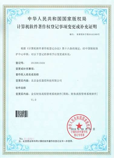 - 財務流程管理系統軟件著作權登記證書