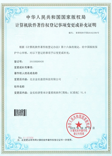 - 經濟資本計量系統軟件著作權登記證書