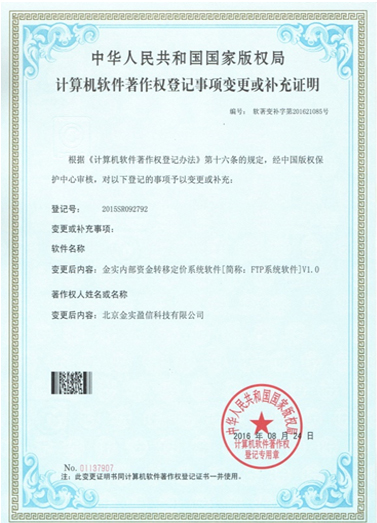 - FTP系統軟件著作權登記證書