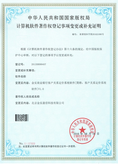 - 客戶關系定價系統軟件著作權登記證書